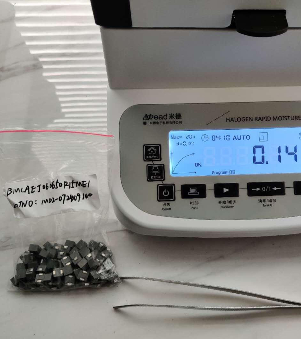 磁性粉體及其鑄件(磁芯)的水分測試測試儀器:米德QL-100B(稱重精度0.0001g,水分解析0.001%)測試...