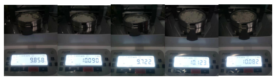 產品 | 溫度(℃) | 重量(g) | 時間(min) | 水分(%) |